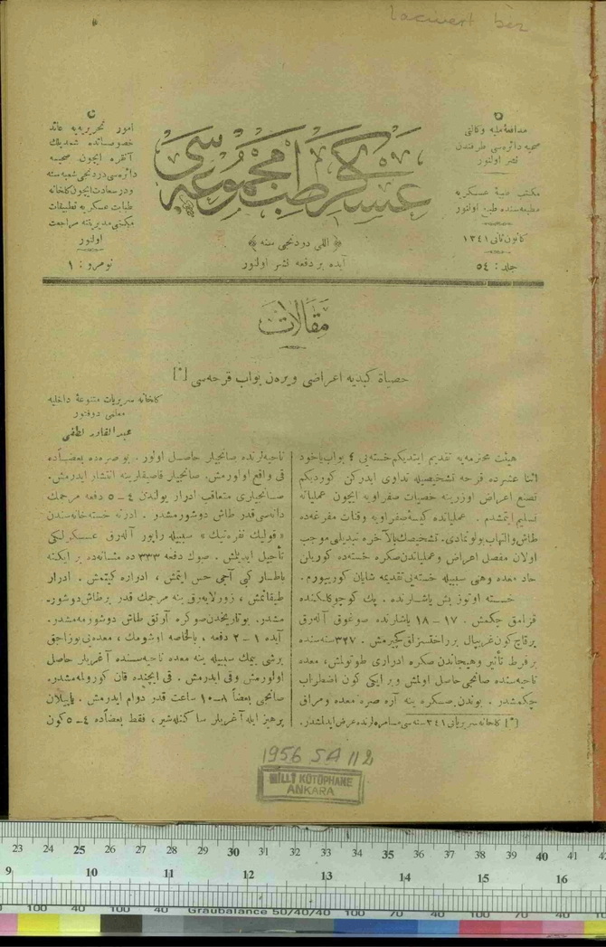 Askeri Tıb Mecmuası 54. Sene Sayı 1 (1956 SA 112)